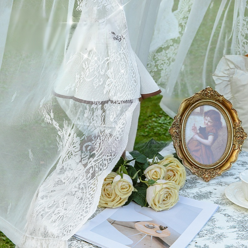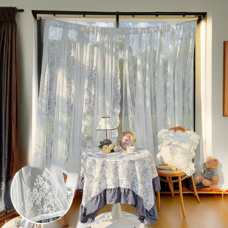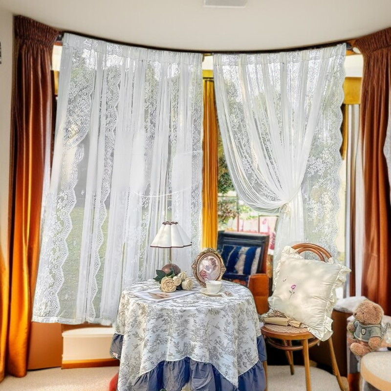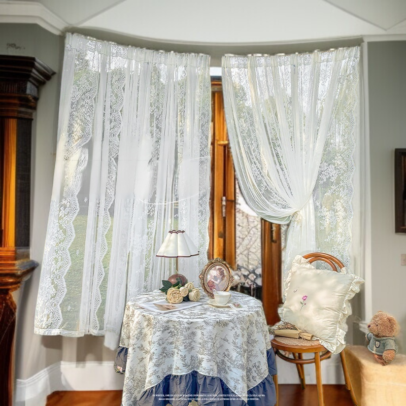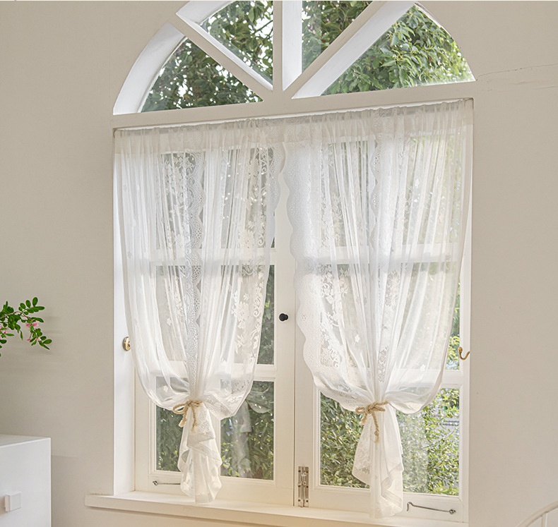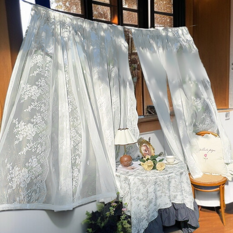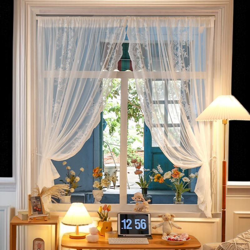 Finished transparent natural white floating window tulle curtains lace jacquard screen curtains